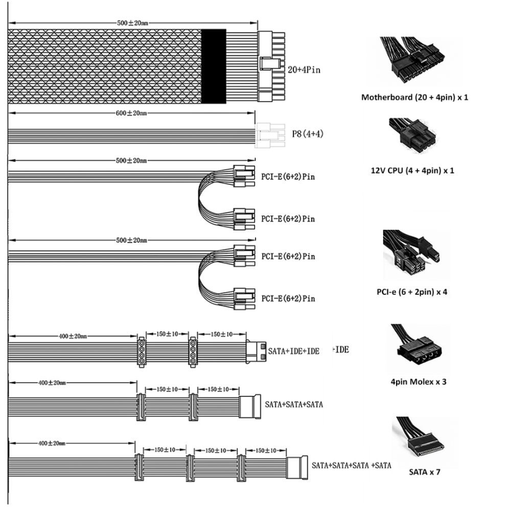 • Longer Cable Lengths - Longer 20 + 4 and 4 + 4 cables up to 550mm in length for easy high-end tower chassis installation.